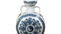 This is one of the most elegant examples of Imari celadon porcelain. It is gourd-shaped, with six stripes in relief on the body and celadon glaze over the entire surface. Probably made around the Kanbun period, it is a highly finished piece of Imari celadon porcelain.