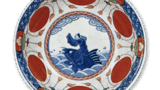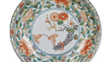 This twelve-cornered pot has a bell-shaped rim with a landscape-pavilion design within a prospective circular window, and on the four sides of the interior, there are windows with diamond-shaped flowers in a large section with a floral motif in between. On the outside, the four sides are decorated with a rhombus design with arabesque patterns in white on a red ground, with arabesque patterns in moe yellow and red between the four sides. A double circle is shown inside the base.