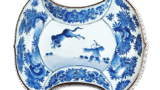 These are so-called “Yumahama” pieces, which are plates decorated with a kumakyu (bow) and noshi (dried dried sea weeds), and were probably made to order by a samurai family. They were probably made to order by samurai families.