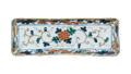 This is a graceful fan-shaped dish. The left side of the prospect is decorated with a diamond-shaped design, while the right side is decorated with a graceful chrysanthemum and bush clover design. The inscription “Fugi Choshun” is inscribed on the base. This type of vase also seems to have been exported to Europe in the late 17th and 18th centuries.