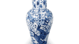 This square shaped tokutari has a heaped-up shoulder with a narrow mouth in the center. The lid and base of the mouth are decorated with chrysanthemum flowers. This is one of the most beautiful of its kind, and there are very few of this quality. The four sides of the body are decorated with chrysanthemums, grapes, squirrels, peonies, and plum blossoms, and the four sides of the shoulder are decorated with a butterfly design in gold over lapis lazuli. This is also a former export item that was recently imported from Europe. It can be said to be an excellent work in the typical Ko-Imari style.