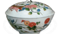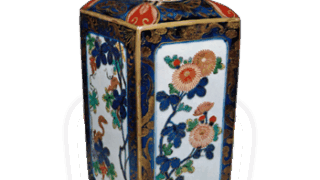 This is a square-shaped Tokutari in the same style as the previous one, but with a narrower mouth. The top panel also has a phoenix and cloud design, and the body has a floating lion and peony design, but the entire ground and design are expressed in underglaze blue and iron glaze, and in white. The body shows a floating design of lion and peony, which is expressed in underglaze blue and iron glaze, and the entire surface of the ground and design is expressed in white.
