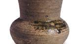 This pottery is thought to have been produced at the Sanage kiln in Aichi Prefecture, judging from the firing process. The rim is beveled, a feature common to Sanage kiln vessels, and the ratio of the height to the diameter of the vase is larger than that of Minosue kiln vessels. The center of this piece has a mark from the overlaying of other vessels.
