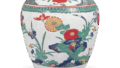 This is a rare example of a jar with an octagonal beveled body. The white glaze has fine penetrations over the entire surface, giving the jar a soft and gentle appearance. The two sides of the body are each decorated with a peony design centering on a tahoishi stone, with a bird on the tahoishi stone, one with its wings outstretched and the other halfway subdued. This is also one of the most vivid Kakiemon-style paintings in milky-white handles, especially the blue paint is bright and brilliant. However, compared to Figure 5, the brushstrokes in the bone drawing are somewhat more delicate, suggesting that it may have been produced in a slightly later date.