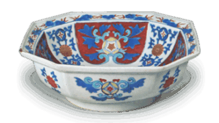 In addition to this piece, there is one other large deep bowl with a lid in the Umezawa Memorial Museum collection in Japan. In Europe, there are several pieces without lids in England and one in the Louvre Museum in France. All of them in Europe were used for interior decoration with metal fittings for bases and handles, and this deep bowl seems to have been one of them in the past. This form with a large lid was ordered from Europe, and a similar form was ordered by the Dutch East India Company from Jingdezhen, China, during the early Kangxi period.