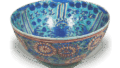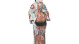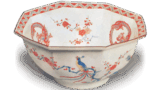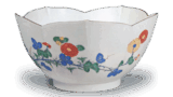This is an early color painting of the same type as the first two, but with yellow glaze overglaze painting on the entire surface of the ground. The design is also less formal, and the overglaze painting is done in darker colors. The inner rim design shows a chrysanthemum arabesque, but the arabesque is old-fashioned.