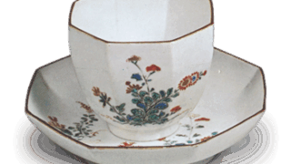 Similar in style to the Genroku-inspired dish, this plate features a magnificent underglaze blue underglaze painting of a fish swimming in a mountain stream against a rocky background. The inside of the shallow rise is decorated with a peach tree against a rocky background. The reverse side is decorated with a hozu design, and a single mark remains in the center of the elevated platform.