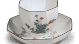 The top of the lid is covered by a knob with a dragon’s head. The design shows a nipple-head pattern in a molded relief, and the family crest of a sword-acupuncture plant is shown at the base. Judging from the soft porcelain body in the early milky white hand style, it is thought to have been made before the Kanbun period.