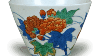 The circular shape of the prospective base is depicted with two small birds resting on an oak tree in solid brush strokes of underglaze blue, yellow, and green overglaze enamels, which are fired to a strong color tone. The favoritism around the rim is also rare among Nabeshima wares, and it is likely that this pattern was created precisely because this is an old Nabeshima ware. The peony arabesque with flowers on the four sides and the sword-tip lotus petal design on the side of the base are also depicted spontaneously and vigorously, and the color is slightly darkened, perhaps due to the raw firing process. Overall, the work is full of vigor rather than elegance, and is unprecedented even for an old potter’s wheel. Of course, it was made before the Enpo era. It is part of the Hirota Collection donated to the Tokyo National Museum.