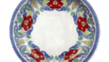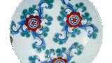 The reverse side is decorated on three sides with an arabesque design centering on a six-petaled flower design, and the base is a comb-shaped base. The back side is decorated with arabesque patterns on three sides, centering on a six-petaled flower design, and the base is a comb-shaped base. The arabesque design on the five sides and the star-shaped central margin are interesting and skillfully designed. Both the underglaze blue and overglaze blue are beautifully colored, especially the green overglaze pigment.