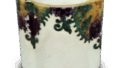 These works were conventionally called “Matsugaya,” but as already mentioned, they are assumed to belong to the Ko-Nabeshima group. The overglaze enameled ware is made by combining underglaze blue and overglaze blue, and the overglaze enamel patterns are applied in a haze-like effect with underglaze blue on a white ground. The molding is die-cut, but it is thick and solid. The purpose of these vessels seems to have been the same, but they may have been made as booze cups. Some of them have thin tubes attached to the sides. Some of them are covered with a residue of overglaze painting, which is quite careless, yet they have a certain dignity.