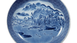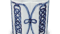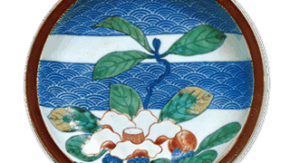These works were conventionally called “Matsugaya,” but as already mentioned, they are assumed to belong to the Ko-Nabeshima group. The overglaze painting was done on a white ground with a haze-like overglaze pattern in a light shade of blue. The molding is die-cut, but the pieces are thick and quite solid. The purpose of these vessels seems to have been the same, but they may have been made as booze cups. Some of them have thin tubes on the sides. Some of the overglaze glazes flowed and mixed into the bowls, which is a rather careless style, but the pieces still have a certain dignity.