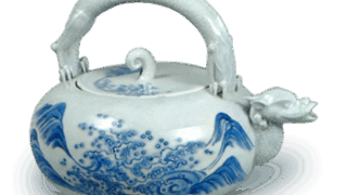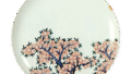 Dish with autumn grass design. underglaze blue. overglaze enamels