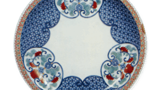 It was Mr. Imaizumi who presented this unparalleled large dish as an old Nabeshima dish from the Minamigawara period, a presumption that is probably valid. The autumn grasses on the front of the dish and the pattern of dust in a blurred dye pattern are in the Kakiemon style, suggesting that this dish is of the Kakiemon line. However, the long combed decoration on the high plateau extending to the tatami mats and the arabesques with peony flowers on three sides are also characteristic of the Nabeshima domain kilns. In a strict sense, it is not clear whether this dish was made for Ko-Nabeshima or Kakiemon, but it can be said to be an early example of a large dish (shaku-plate) in the Ko-Nabeshima style.
