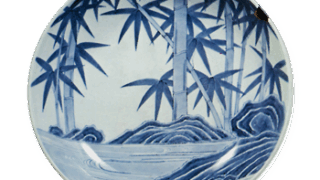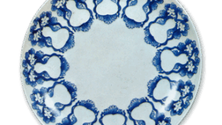 The plate with willow swallow design in overglaze enamels shows two flying swallows and willow trees. The lines of the flying swallows are drawn with thick strokes and are quite powerful. There is no bone drawing, which is characteristic of Nabeshima, under the dye stain. As in the previous painting, the green overglaze painting is not well colored, and some parts of it have been changed to red. There is no design on the reverse side, but rather a series of willow leaves are thinly drawn from the front. This is also a unique piece.