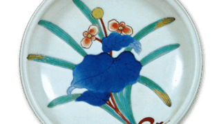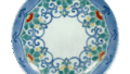This slightly deep, gourd-shaped dish has a wisteria bean pattern in light purple, green, and yellow on the surface. The purple tones of the wisteria beans are unique and rarely seen. The reverse side is fully decorated with an old-fashioned peony arabesque, and the base is covered with a short comb pattern.