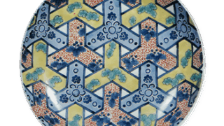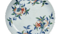 This dish has the same design as “Dish with hibiscuses and chrysanthemums in overglaze enamels,” but there are some differences in expression, perhaps due to the different production dates. In the illustration of pottery handed down to the Nabeshima family, it is noted that similar patterns were produced at different times, and this difference may have been caused by such a situation. The back is decorated on three sides with cloisonne patterns, and the base is a comb-shaped base.