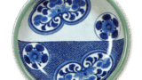 As in the previous painting, this piece is based on celadon porcelain and blue ocean waves, and has seven scattered rounded patterns with Tang flower motifs within. As in the previous example, the spacing between the scattered patterns is extremely skillful. The back is decorated on three sides with cloisonné patterns, and the base is decorated with a comb pattern.