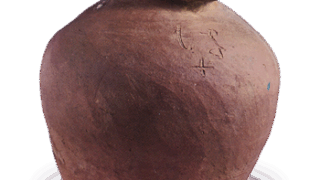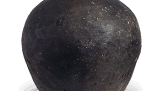 This is a rare example of a complete large jar. It is made of high-quality yellowish-white clay, and is molded by rolling up clay strings. The outer surface is beaten by latticework, and the inner surface is beaten by blue sea waves to tighten the walls. The bottom is slightly pointed and rounded, and the long body is topped by a 3.5 cm long neck with a 3.5 cm long outer neck, harmonizing well with the rest of the vessel. It is well fired and has a yellowish green natural glaze on the shoulder.