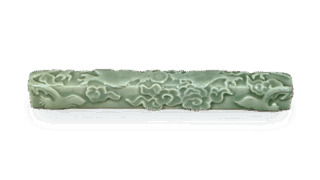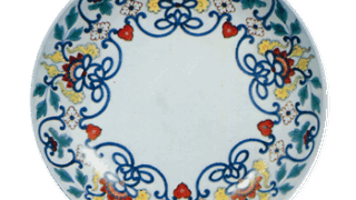 Okayama Museum of Art This is a unique work even for a Yun Dish with a Bokku rim covered with a celadon glaze. The reverse side is decorated with cloisonne enamel and a comb-shaped plate base.
