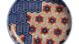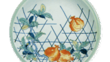 These are also works with a graceful design typical of Nabeshima, with cherry blossoms on a gosho car, but one shows one car and the other shows two, using the same theme. Both of these works are representative of the five-sun plates of Nabeshima. The back of the plate is decorated with cloisonne enamel and a comb-shaped plate base.