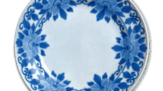 This is a New Year’s design dish with the theme of “Jyoyo” (a Japanese name for the leaves of the Zelkova family), decorated in white on the reverse side and showing blue ocean waves in the background. The greenish-blue paint used for the “Jyoyo” leaves is unique to Nabeshima, and only pieces with this vivid color are often superior. The back is decorated on three sides with a design of peonies and branches, which is also common on many of the finer pieces. The back is decorated with a peony design on three sides.
