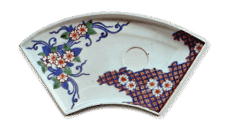 This dish has a five-petaled flower-ring shape on the lower part, with a hozu design in the five-way window.