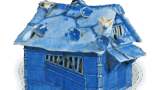 The borders of the windows are drawn in green. The reverse side is also covered with celadon glaze and is unmarked.