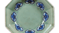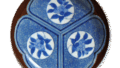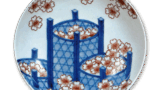 The two dishes have a similar gauze pattern, but the first dish is decorated in colors. The shape of the dish is in the shallow rise of the old Nabeshima style, and the reverse side is decorated with peony flowers on three sides in all arabesque patterns. The reverse side is decorated with peony flowers on three sides.
