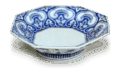 This deep-rise dish has a peony flower design on the prospective side. The back is decorated with a peony flower design in arabesque on three sides. The base is decorated with a peony flower design on three sides.