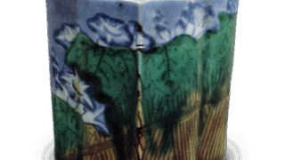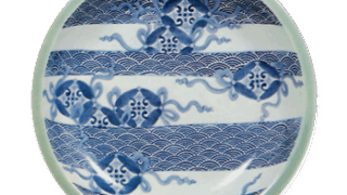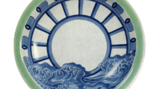 This oddly shaped dish, which looks like two leaves stacked on top of each other, is of high quality with sharp edges. The cloisonne design in sumi-resist ink is clearly expressed, and the base is covered with serrated lotus petals.