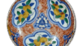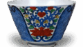 This elegant mukozuke has a three-sided body with a rounded design in white on the three sides, and a Chinese flower design in red and green on the inside. The red color is glossy, and the green color is Nabeshima’s distinctive greenish blue, the most beautiful color tone of Nabeshima in overglaze enamels. The interior is plain white.