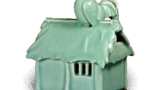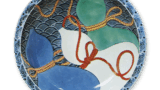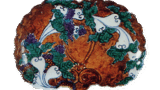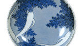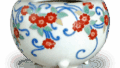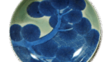 The body of this standing drum vase is decorated with Warabi-style ears, and three floating lines of stripes are arranged around the body. This is also an ideal example of Nabeshima celadon porcelain. The dewdrops are burnished red.