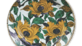 Many of the Ko-Kutani style color paintings were influenced by the Fuyo-te style of the late Ming and early Qing Dynasty, and this example is a direct copy of Fuyo-te. This example is a direct copy of Fuyo-te. The eight-paned window depicts a phoenix standing on a cliff, and the surrounding area is decorated with the unique Fuyo-te pattern. The design is somewhat similar to that found on fragments of Fuyo-te wares excavated from an old kiln site in Kutani. The reverse side is decorated with a design of flowers and grasses on two sides and Asuka in green and red between the two sides. The shape of the bowl is unique, with a ridge at the waist, and is not often seen on large dishes. The Kakufuku inscription is written inside the base, and the dish is finished in navy blue.