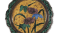 The reverse side is covered with yellow glaze. The design on the reverse side is typical of the Aote Kutani style.