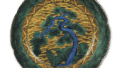 Among the numerous Aote Kogutani wares, this is the most elegant in composition and is highly valued. The elegant design of the two fan-faces on the corrugated ground with a corrugated pattern on the prospective surface may have been designed in the style of the fan streamers. The green glaze on the ground and the purple and yellow of the fan surface are all brilliant. On the reverse side, a Kakufuku inscription is inscribed inside the base, surrounded by arabesque patterns peculiar to Aote, and the entire surface is covered with a yellow glaze.