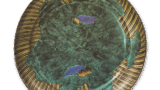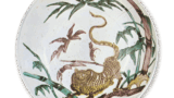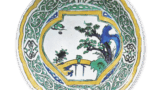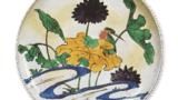 This is a ring-shaped sake cup of this type with a crane circle design. The bottom is oblong, and the design is a large, heavy, and rounded shape. The bottom is oblong, giving it a sturdy and stable appearance. The red color on the neck is impressive. Fragments of the same shape have been excavated from the ruins of an old kiln in Arita.