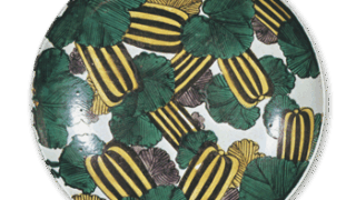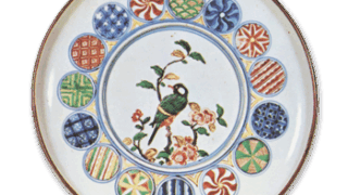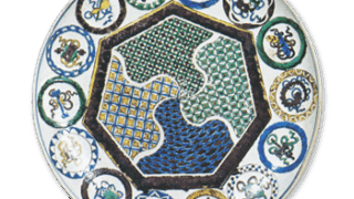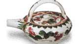 This is a small boar cup with a red border on all four sides. The body is decorated with chrysanthemums, two egrets on an ash, two butterflies on a petal, and two birds on an ash, etc., in vivid colors, and the base is decorated with a kushime pattern in underglaze blue.