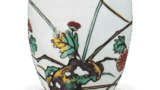 This set of ten kumidashi inokuchi (cups) with a design of flowers and grasses in overglaze enamels has been highly valued in the Koya style since ancient times, and there are many copies of this type of cup made today.