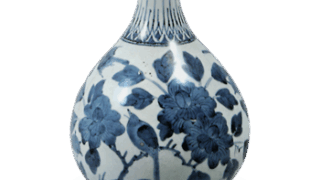 This tea jar has the same shape as the “Tea Jar with Wisteria Flowers in Overglaze Enamels,” but it is a little larger and more generously shaped. However, the wheel throwing is somewhat rough. The white glaze that extends from the mouth to the bottom of the body is not as smooth as that of the tea jar with wisteria flowers in overglaze enamels, due to the unevenness of the glaze. The overglaze painting technique seems to be rather crude, although the design of Yoshino Mountain on the body is roughly represented in a spacious manner.