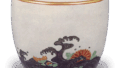 The silver petals are covered with red, and the veins of the peony leaves are painted by needlework. The ground is overlaid with a water chestnut design in silver, green, red, and gold, giving it the appearance of maki-e (maki-e). The bottom of the jar is shallow and flat with a thin rim, and the clay is visible from the base to the bottom, giving the jar a soft clay taste unique to Ninsei. On the left side of the bottom, there is a large seal stamped “Insei” as on tea pots.