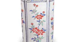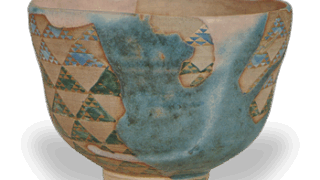 Insei is said to have trained his pottery skills in Seto, and although he produced many excellent works such as Seto-glazed tea containers, there is no other example of a tea pot glazed with Seto glaze. This tea jar has a sharply twisted outwardly turned mouth with a ball-shaped rim, and the vertical ridges on the four sides of the body are an ingenious feature that is typical of Ninsei. The four sides of the body are vertically ridged in a way that is typical of Insei’s work. The uneven Seto chajiri glaze is applied from the mouth to the bottom of the body, and the clay is visible from the bottom of the body to the bottom of the body. The flat bottom of the bowl has the name “Ninsei” engraved on a nail. After World War II, it was acquired by the Freer Gallery of Art in the United States.