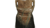 In the early Edo period (1603-1868), shakuhachi (bamboo vase) shaped ceramic vases were in vogue, and Sotan had them made in Shigaraki. In the past, Sen no Rikyu made a bamboo shakuhachi flower vase, and this vase is in the same vein. It is a hanging vase with a knot at the top and four holes drilled at the bottom, with a long hanging hole at the top of the back and a curtain seal stamped below it. The interior is glazed and the exterior is burnished with a hint of red.
