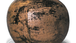 This is a scoop stand, probably modeled after those found in Tang bronze and Chikan celadon. It has a four-sided cylindrical form with a stepped top and a base with two sides with a “shuhama” (beach-shaped) perforated pattern. It is decorated on two sides with iris patterns on the front and back, and has a cocoon-shaped seal by Ninsei stamped on the bottom. This is a rare vessel rarely seen anywhere else.