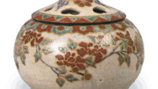 The design of many fine threads is painted with underglaze rust paint, and almost the entire surface is covered with a cloudy white glaze with a small seal of Insei on the back. It is one of the best examples of Insei’s cover vases.
