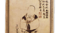 This plate, one of ten in the Fujita Museum collection, depicts Daikoku and is also inscribed “Hohashi Korin Painting” with the inscription “Qianzan” on the reverse side. This type of plate was called “lid-shaped” in the old days, and we have seen a box with the inscription “Qianzan inkstone lid” on the back of the lid.