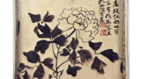 This round, flat incense container is also decorated with a painted design using white glaze, a technique unique to Qianzan. The back of the lid is painted with an eggplant design in white mud and rust over a transparent glaze, while the sides are decorated with a hinokagaki-style design in iron on a white ground with underglaze gouges and overglaze gold overglaze painting. The bottom of the box is inscribed “Kenzan” with a seal (hana-seki). The reverse side of the lid of the inner box is inscribed with the inscription, “Came from Nakai Chusuishimasa, dated March 2nd, Hoei 2 (Year of Hoei 2).