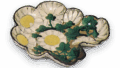 This wisteria bowl shows a wisteria flower design with tassels hanging down from the mouth to the body, inside and out. It is painted with branches in iron pigments on a white glaze like a haze, glazed with transparent glaze, and painted with purple and green. It was handed down in the Fujita family.