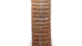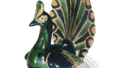 This sake bottle bottle has a unique shape with the shoulders shaped like a mountain. The four sides of the shoulders are decorated with butterflies, the body is roughly decorated with a Chinese floral design, and the lid, which has a round cord, is decorated with a five-petaled floral design. The bottom of the clay vessel is carved in the center in the style of a bamboo wheel and has incisions on all four sides, and on the base of the bamboo wheel is stamped the seal “Go-Bosatsu” (meaning “Bodhisattva” in Chinese). It is thought that this pottery was not made during the Gobosatsu-ike period, but rather after it was moved to Karasuma Neutral Seller.