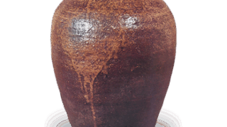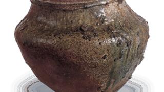 Although the place of provenance is unknown, this vase is probably from western Japan, judging from the clay, firing, and form. The neck of the mouth is small, and the rim of the mouth is heavily bowed outward. It has a single protruding band on the shoulder, and both sides of the body are decorated with protruding bands and dots.